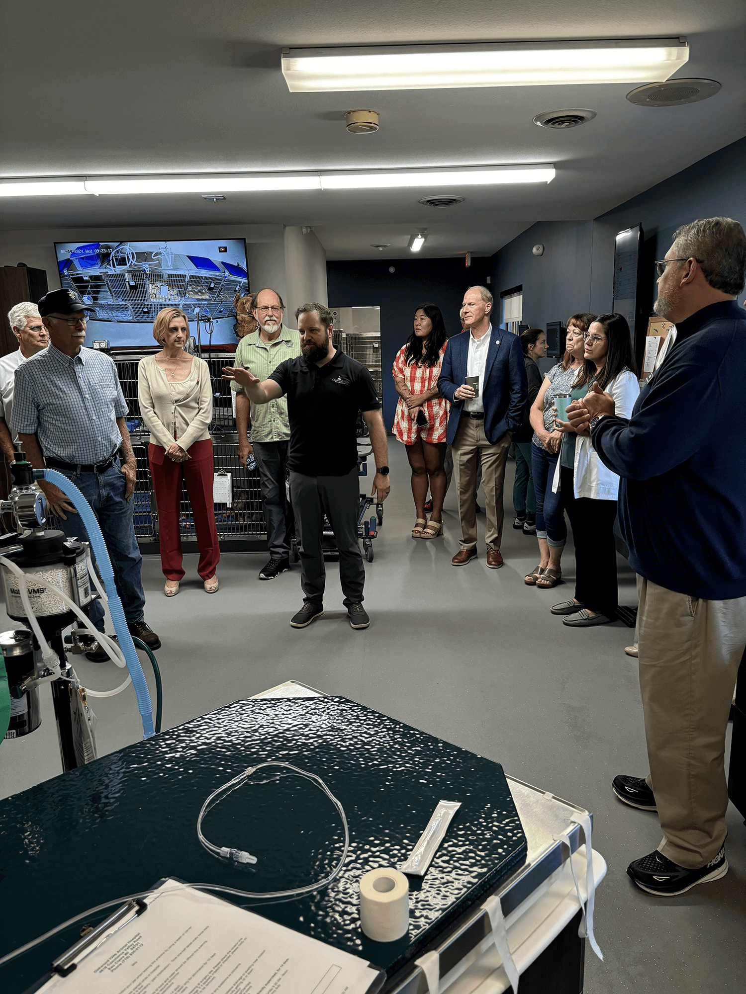 At the Oakwood Hills Animal Hospital in Eau Claire, Jonathan Levine, the new dean of UW-Madison’s School of Veterinary Medicine, met with area veterinarians and discussed the need for more large-animal and general practitioner vets in western Wisconsin. He also updated everyone on the School of Veterinary Medicine building project and the need to accommodate more students to keep up with the growing demand for vets.