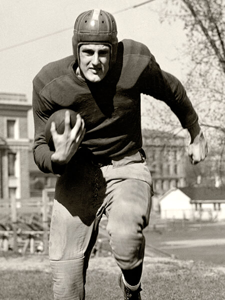 The Marathon County native first gained attention for his athletic ability at Wausau High School. After enrolling at the University of Wisconsin–Madison, the boy adopted by German-Norwegian parents began breaking records and earning honors. Playing halfback, he helped the Badger football team close out the 1942 season ranked third in the country by the AP.