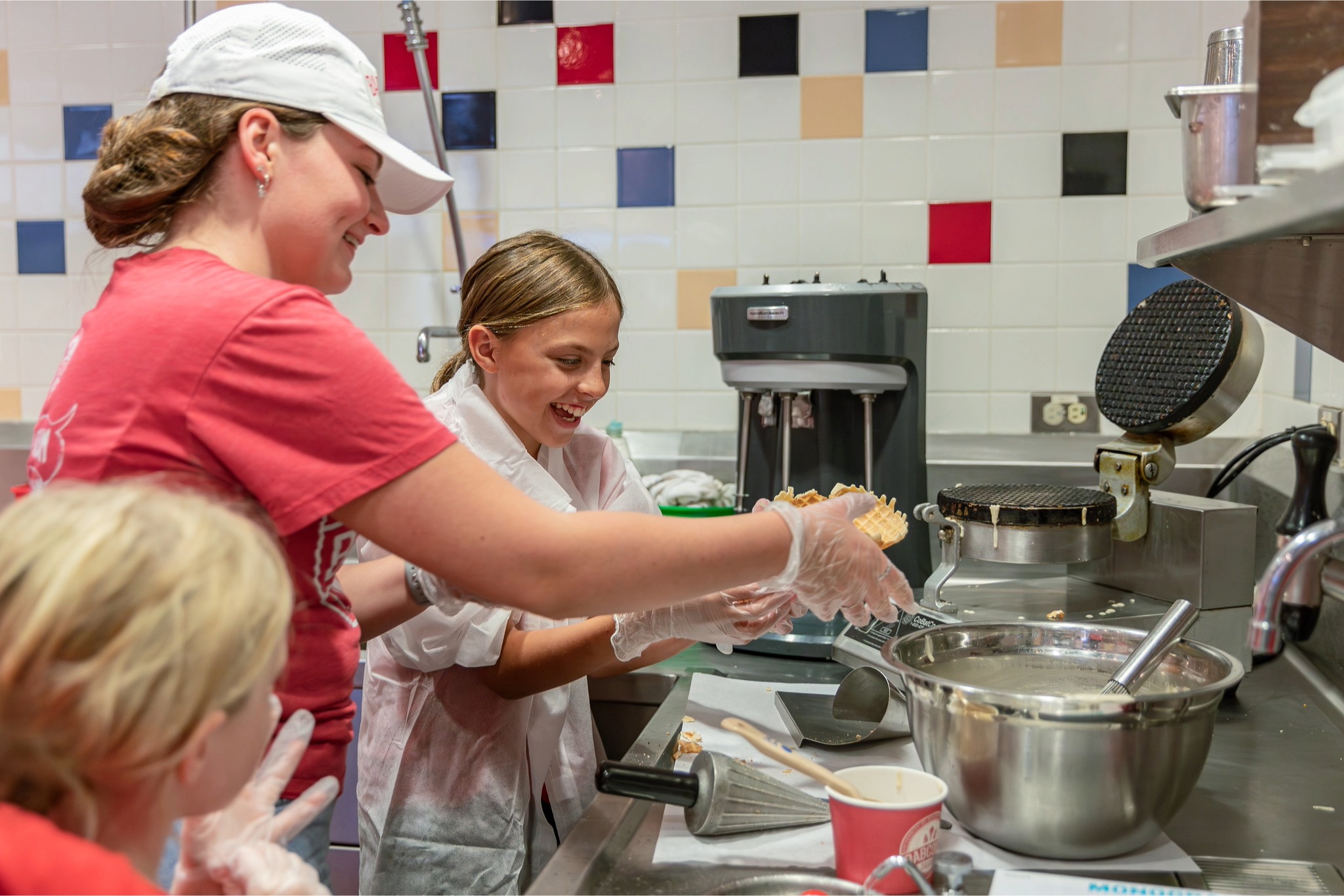 Badger Tracks – vanilla ice cream with a Door County cherry swirl and chocolate badger paws filled with cherry cordial.