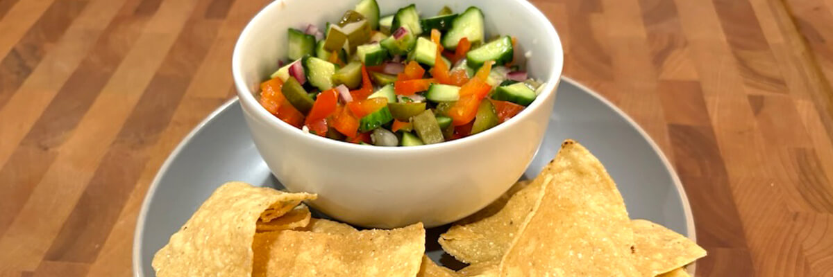 I plated my pickle de gallo with tortilla chips, and what I thought would be a light snack to enjoy over a few days became my dinner — I ate the whole thing. The finely diced mixture of crisp, fresh veggies and salty pickles was the perfect complement to thin, crunchy tortilla chips. Even after clearing the plate — which definitely could have been shared — I felt comfortably sated.