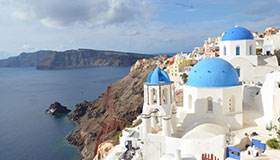 Finally, what would a trip to Greece be without a visit to picturesque Santorini? It included a cable-car ride and a scenic drive to the village of Oia, known for its panoramic views and narrow, cobblestone streets filled with quaint shops and cafés, indigo-domed churches, and chalk-colored homes amid stony cliffs.